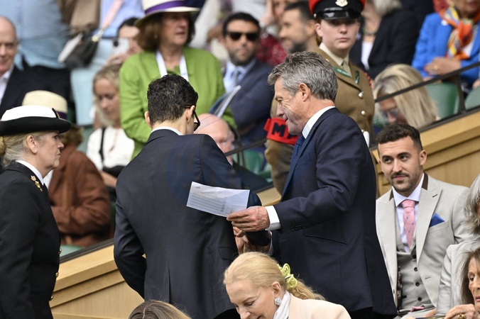 Hugh Grant z zoną Anna Elisabet Eberstein Gwiazdy na trybunach turnieju Wimbledon w Londynie