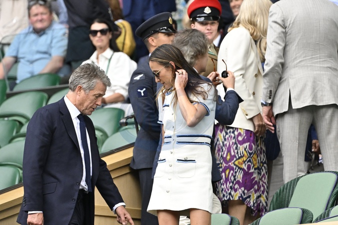Hugh Grant z zoną Anna Elisabet Eberstein Gwiazdy na trybunach turnieju Wimbledon w Londynie
