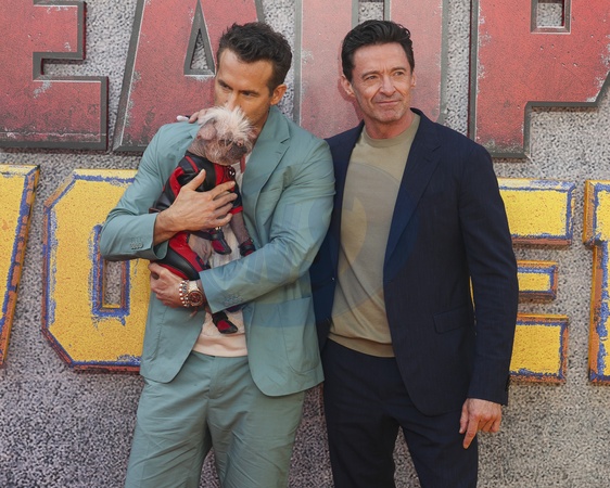 Ryan Reynolds, Peggy and Hugh Jackman at the Deadpool & Wolverine UK Fan Event at Eventim Apollo in Hammersmith, London, Credit:Cat Morley / Avalon