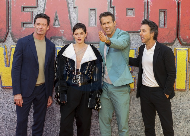 Ryan Reynolds, Emma Corrin, Hugh Jackman and Shawn Levy at the Deadpool & Wolverine UK Fan Event at Eventim Apollo in Hammersmith, London, Credit:Cat Morley / Avalon