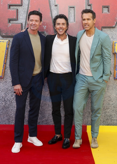 Ryan Reynolds, Shawn Levy and Hugh Jackman at the Deadpool & Wolverine UK Fan Event at Eventim Apollo in Hammersmith, London, Credit:Cat Morley / Avalon