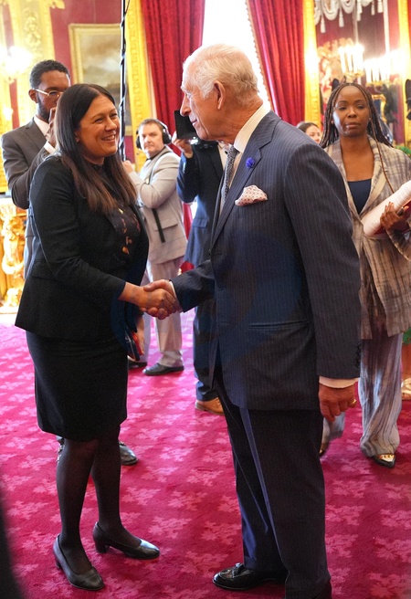 King Charles III talks to Culture Secretary Lisa Nandy at an event for The King's Trust to discuss youth opportunity, at St James's Palace in central London. The King and Mr Elba, an alumnus of The King's Trust (formerly known as The Prince's Trust), are meeting about the charity's ongoing work to support young people, and creating positive opportunities and initiatives which might help address youth violence in the UK, as well as the collaboration in Sierra Leone between the Prince's Trust International and the Elba Hope Foundation., Credit:Yui Mok / Avalon