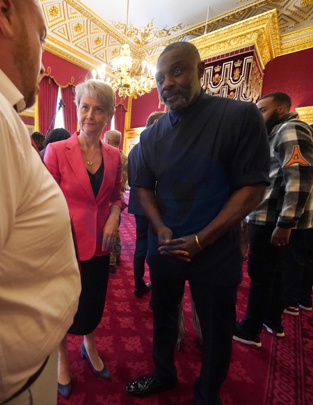 Home Secretary Yvette Cooper and Idris Elba at an event for The King's Trust to discuss youth opportunity, at St James's Palace in central London. The King and Mr Elba, an alumnus of The King's Trust (formerly known as The Prince's Trust), are meeting about the charity's ongoing work to support young people, and creating positive opportunities and initiatives which might help address youth violence in the UK, as well as the collaboration in Sierra Leone between the Prince's Trust International and the Elba Hope Foundation., Credit:Yui Mok / Avalon