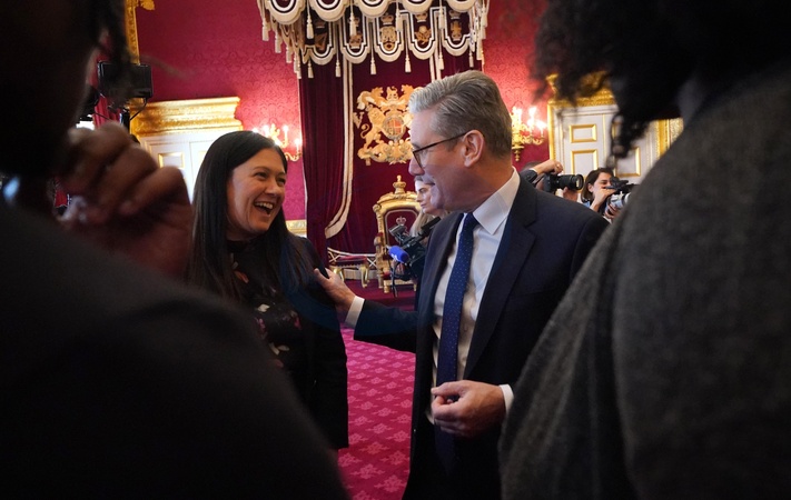 Culture Secretary Lisa Nandy and Prime Minister Sir Keir Starmer at an event for The King's Trust to discuss youth opportunity, at St James's Palace in central London. The King and Mr Elba, an alumnus of The King's Trust (formerly known as The Prince's Trust), are meeting about the charity's ongoing work to support young people, and creating positive opportunities and initiatives which might help address youth violence in the UK, as well as the collaboration in Sierra Leone between the Prince's Trust International and the Elba Hope Foundation., Credit:Yui Mok / Avalon