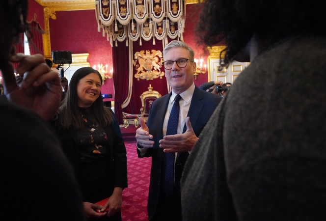 Culture Secretary Lisa Nandy and Prime Minister Sir Keir Starmer at an event for The King's Trust to discuss youth opportunity, at St James's Palace in central London. The King and Mr Elba, an alumnus of The King's Trust (formerly known as The Prince's Trust), are meeting about the charity's ongoing work to support young people, and creating positive opportunities and initiatives which might help address youth violence in the UK, as well as the collaboration in Sierra Leone between the Prince's Trust International and the Elba Hope Foundation., Credit:Yui Mok / Avalon