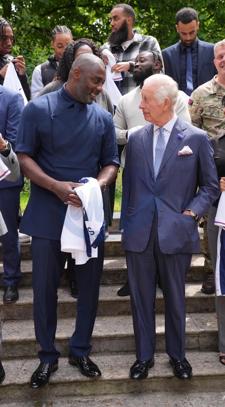King Charles III (right) with Idris Elba (left) and young people attend an event for The King's Trust to discuss youth opportunity, at St James's Palace in central London. The King and Mr Elba, an alumnus of The King's Trust (formerly known as The Prince's Trust), are meeting about the charity's ongoing work to support young people, and creating positive opportunities and initiatives which might help address youth violence in the UK, as well as the collaboration in Sierra Leone between the Prince's Trust International and the Elba Hope Foundation., Credit:Yui Mok / Avalon