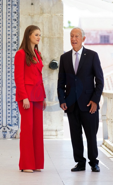 La princesse Leonor et le président de la République portugaise, Marcelo Rebelo de Sousa au palais de Belém à Lisbonne, Portugal, le 12 juillet 2024. © Lalo Yasky/Bestimage President Rebelo de Souza recives Crownprincess Leonor of Spain at Belem Palace. Princess Leonor is in a 1 day visit to Portugal in her first official trip to a foreign country. Lisbon, Portugal - July 12, 2024.