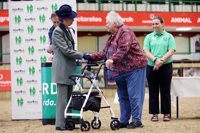 GLOUCESTER, ENGLAND - JULY 12: Princess Anne, Princess Royal presents an Award during the Riding for the Disabled Association (RDA) National Championships at Hartpury University and Hartpury College on July 12, 2024 in Gloucester, England. The RDA is celebrating its 55th anniversary this year. Her Royal Highness has been the Patron of the RDA since November 1971 and assumed the role of President in March 1986., Credit:Cameron Smith / Avalon