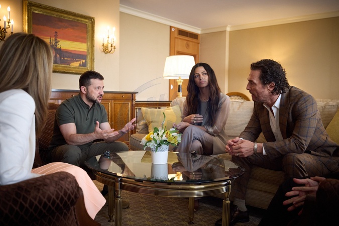 Spotkanie prezydenta Ukrainy Wołodymyra Zełenskiego z Matthew McConaugheyem i jego żoną Camilą Alves podczas jego podróży do Stanów Zjednoczonych