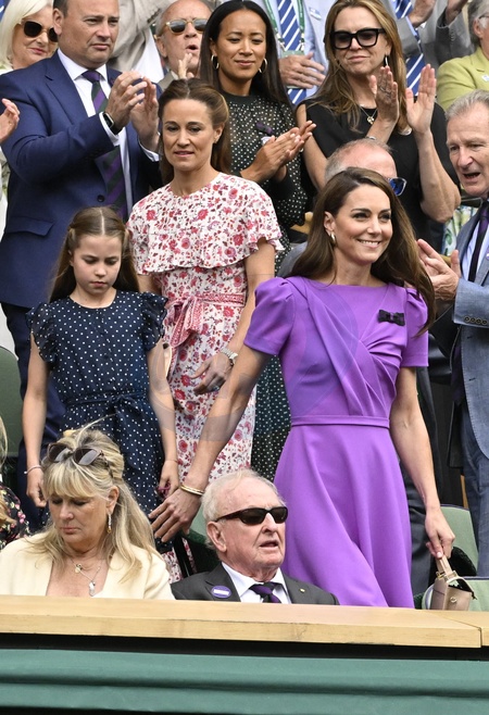 The Princess of Wales (Catherine (Kate) Middleton, princesse de Galles) with her daughter Princess Charlotte (La princesse Charlotte de Galles) and her sister Pippa Middleton attend the Gentlemen's Singles Final on day fourteen of the 2024 Wimbledon Championships at the All England Lawn Tennis and Croquet Club on July 14, 2024 in London, England. © Chryslene Caillaud/Panoramic/Bestimage