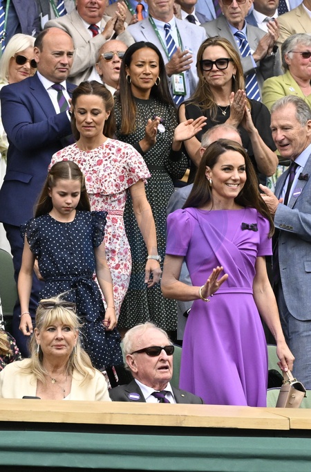 The Princess of Wales (Catherine (Kate) Middleton, princesse de Galles) with her daughter Princess Charlotte (La princesse Charlotte de Galles) and her sister Pippa Middleton attend the Gentlemen's Singles Final on day fourteen of the 2024 Wimbledon Championships at the All England Lawn Tennis and Croquet Club on July 14, 2024 in London, England. © Chryslene Caillaud/Panoramic/Bestimage