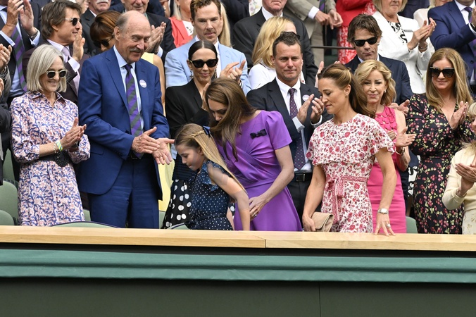 The Princess of Wales (Catherine (Kate) Middleton, princesse de Galles) with her daughter Princess Charlotte (La princesse Charlotte de Galles) and her sister Pippa Middleton attend the Gentlemen's Singles Final on day fourteen of the 2024 Wimbledon Championships at the All England Lawn Tennis and Croquet Club on July 14, 2024 in London, England. © Chryslene Caillaud/Panoramic/Bestimage
