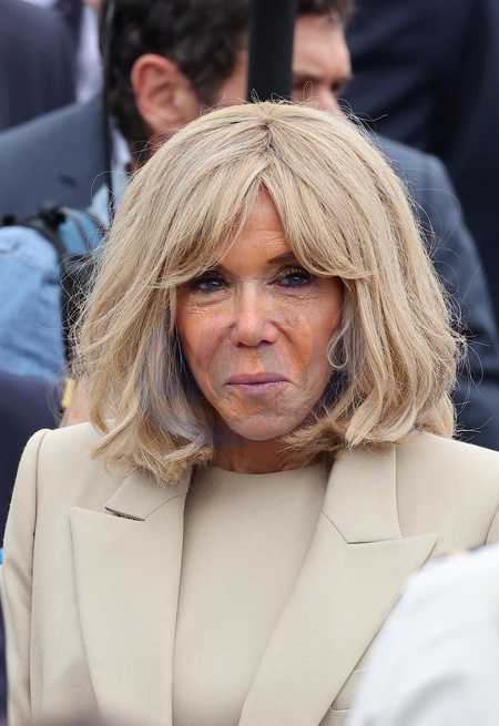 Prezydent Emmanuel Macron i jego żona Pierwsza Dama Brigitte Macron podczas spaceru po zakończeniu ceremonii 144. defilady wojskowej 14 lipca, w Święto Narodowe, w Paryżu