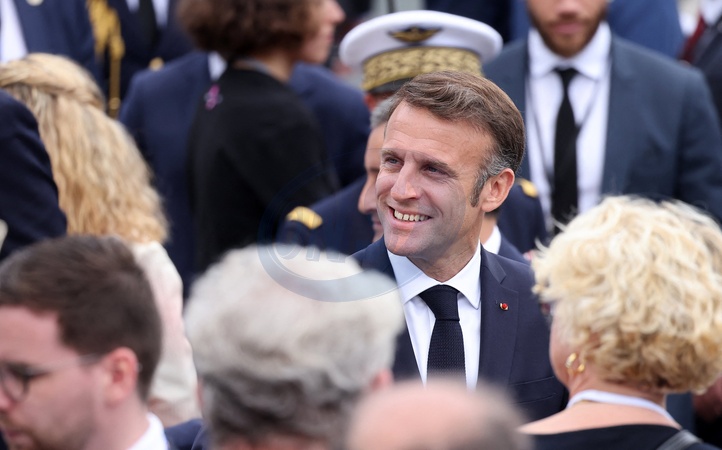 Le président de la République française Emmanuel Macron lors d'un bain de foule à la cérémonie du 144ème défilé militaire du 14 juillet, jour de la Fête Nationale, à Paris, France, le 14 juillet 2024. © Dominique Jacovides/Bestimage rench President during the Bastille Day parade, in Paris, France, on July 14, 2024.