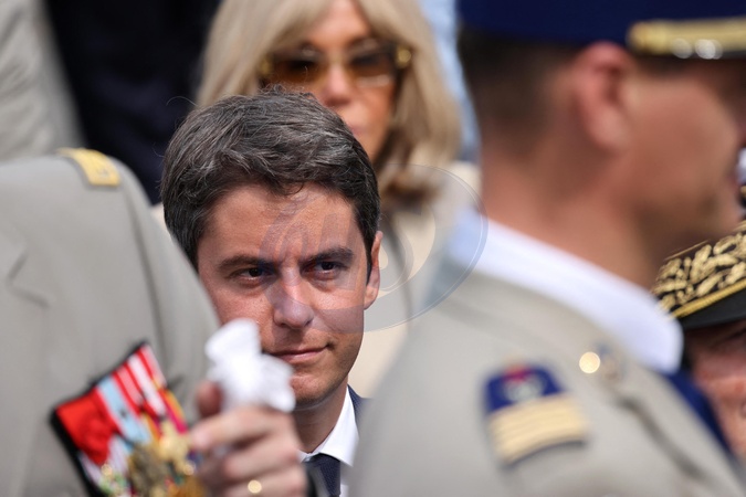 Gabriel Attal, Premier ministre, lors d'un bain de foule à la cérémonie du 144ème défilé militaire du 14 juillet, jour de la Fête Nationale, à Paris, France, le 14 juillet 2024. © Dominique Jacovides/Bestimage rench President during the Bastille Day parade, in Paris, France, on July 14, 2024.