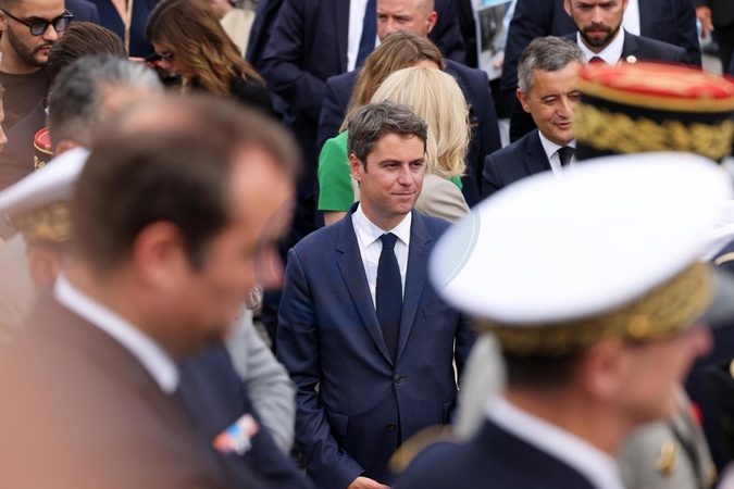 Gabriel Attal, Premier ministre, lors d'un bain de foule à la cérémonie du 144ème défilé militaire du 14 juillet, jour de la Fête Nationale, à Paris, France, le 14 juillet 2024. © Dominique Jacovides/Bestimage rench President during the Bastille Day parade, in Paris, France, on July 14, 2024.