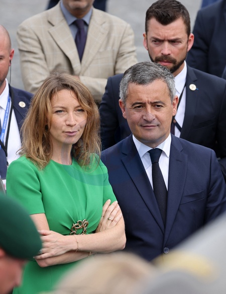 Gérald Darmanin, ministre de l'Intérieur et des Outre-mer, et sa femme Rose-Marie Devillers lors d'un bain de foule à la cérémonie du 144ème défilé militaire du 14 juillet, jour de la Fête Nationale, à Paris, France, le 14 juillet 2024. © Dominique Jacovides/Bestimage rench President during the Bastille Day parade, in Paris, France, on July 14, 2024.
