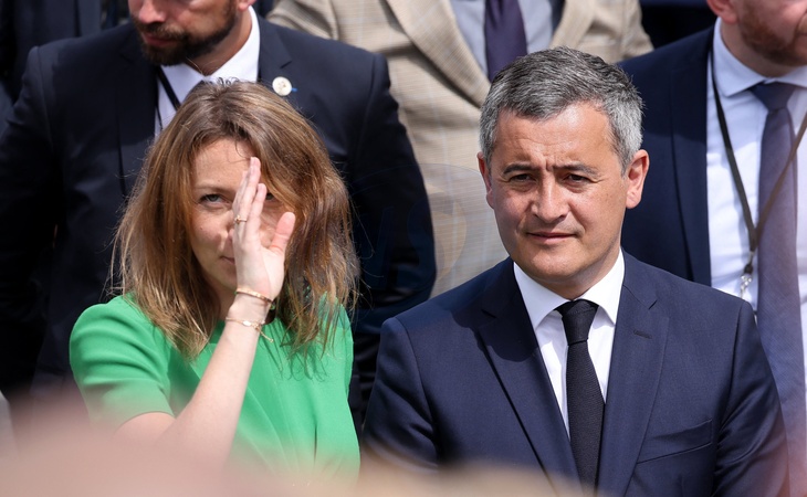 Gérald Darmanin, ministre de l'Intérieur et des Outre-mer, et sa femme Rose-Marie Devillers lors d'un bain de foule à la cérémonie du 144ème défilé militaire du 14 juillet, jour de la Fête Nationale, à Paris, France, le 14 juillet 2024. © Dominique Jacovides/Bestimage rench President during the Bastille Day parade, in Paris, France, on July 14, 2024.