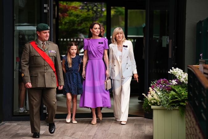The Princess of Wales and Princess Charlottearriving on day fourteen of the 2024 Wimbledon Championships at the All England Lawn Tennis and Croquet Club, London, ahead of Kate presenting the trophy to the winner of the men's final. RESTRICTIONS: Editorial use only. No commercial use without prior written consent of the AELTC. Still image use only - no moving images to emulate broadcast. No superimposing or removal of sponsor/ad logos., Credit:Aaron Chown / Avalon