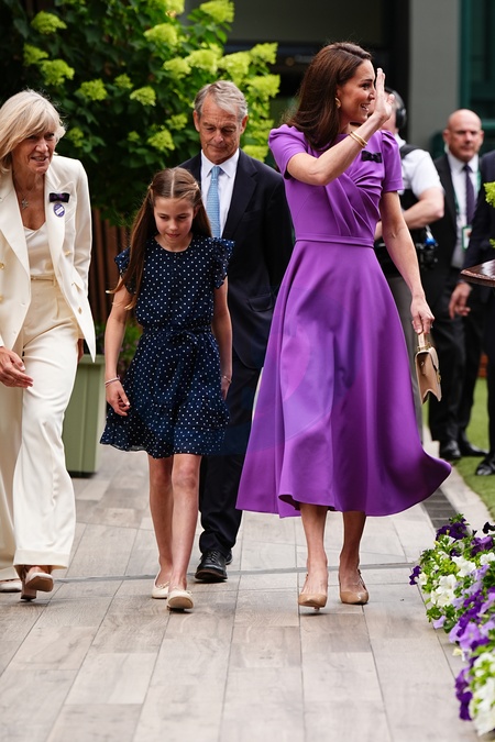 The Princess of Wales and Princess Charlottearriving on day fourteen of the 2024 Wimbledon Championships at the All England Lawn Tennis and Croquet Club, London, ahead of Kate presenting the trophy to the winner of the men's final. RESTRICTIONS: Editorial use only. No commercial use without prior written consent of the AELTC. Still image use only - no moving images to emulate broadcast. No superimposing or removal of sponsor/ad logos., Credit:Aaron Chown / Avalon