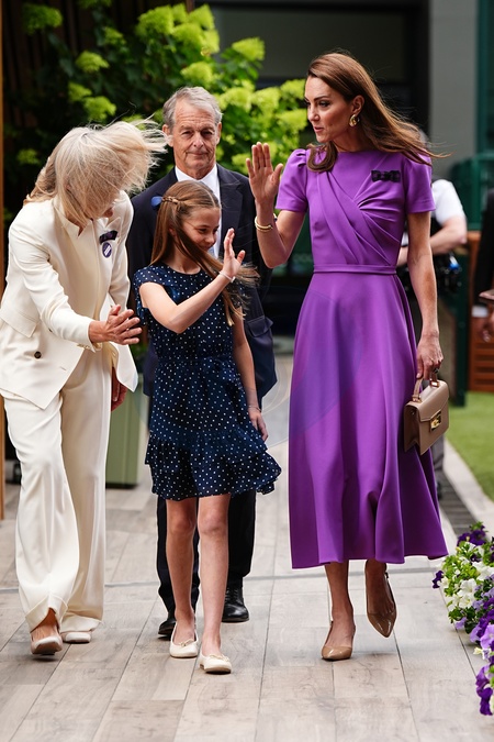 The Princess of Wales and Princess Charlottearriving on day fourteen of the 2024 Wimbledon Championships at the All England Lawn Tennis and Croquet Club, London, ahead of Kate presenting the trophy to the winner of the men's final. RESTRICTIONS: Editorial use only. No commercial use without prior written consent of the AELTC. Still image use only - no moving images to emulate broadcast. No superimposing or removal of sponsor/ad logos., Credit:Aaron Chown / Avalon
