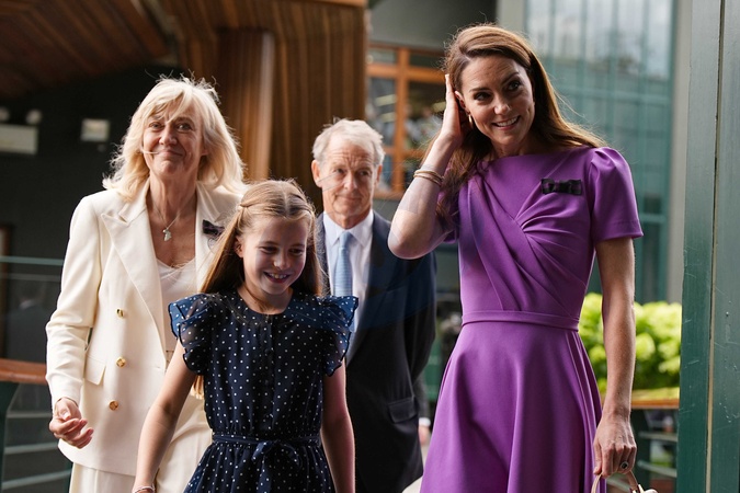 The Princess of Wales and Princess Charlottearriving on day fourteen of the 2024 Wimbledon Championships at the All England Lawn Tennis and Croquet Club, London, ahead of Kate presenting the trophy to the winner of the men's final. RESTRICTIONS: Editorial use only. No commercial use without prior written consent of the AELTC. Still image use only - no moving images to emulate broadcast. No superimposing or removal of sponsor/ad logos., Credit:Aaron Chown / Avalon