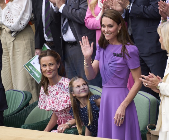 Catherine, Princess of Wales in the Royal box with Daughter Princess Charlotte and sister Pippa during the men's final on centre court between Carlos Alcaraz (ESP) and Novak Djokovic (SRB) at the 2024 Wimbledon Championships at The All England Club, London, United Kingdom , 14 July 2024, Credit:Peter van den Berg / Avalon