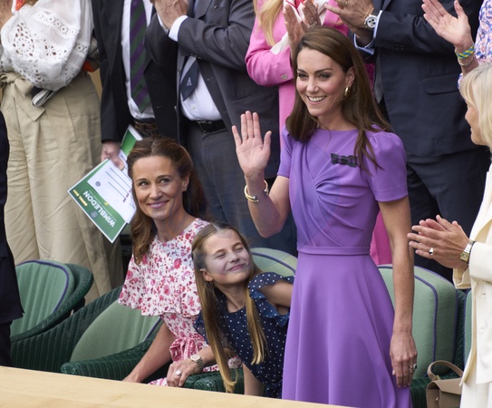 Catherine, Princess of Wales in the Royal box with Daughter Princess Charlotte and sister Pippa during the men's final on centre court between Carlos Alcaraz (ESP) and Novak Djokovic (SRB) at the 2024 Wimbledon Championships at The All England Club, London, United Kingdom , 14 July 2024, Credit:Peter van den Berg / Avalon