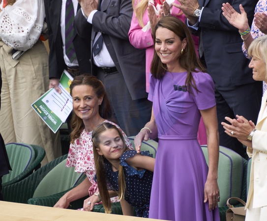 Catherine, Princess of Wales in the Royal box with Daughter Princess Charlotte and sister Pippa during the men's final on centre court between Carlos Alcaraz (ESP) and Novak Djokovic (SRB) at the 2024 Wimbledon Championships at The All England Club, London, United Kingdom , 14 July 2024, Credit:Peter van den Berg / Avalon