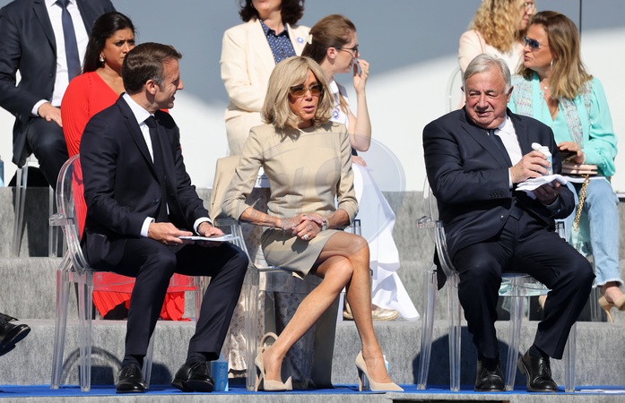 Brigitte Macron Uroczystość 144. defilady wojskowej 14 lipca, w Święto Narodowe, aleja Foch w Paryżu