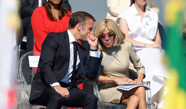 Brigitte Macron Uroczystość 144. defilady wojskowej 14 lipca, w Święto Narodowe, aleja Foch w Paryżu