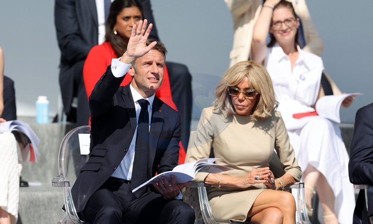 Brigitte Macron Uroczystość 144. defilady wojskowej 14 lipca, w Święto Narodowe, aleja Foch w Paryżu