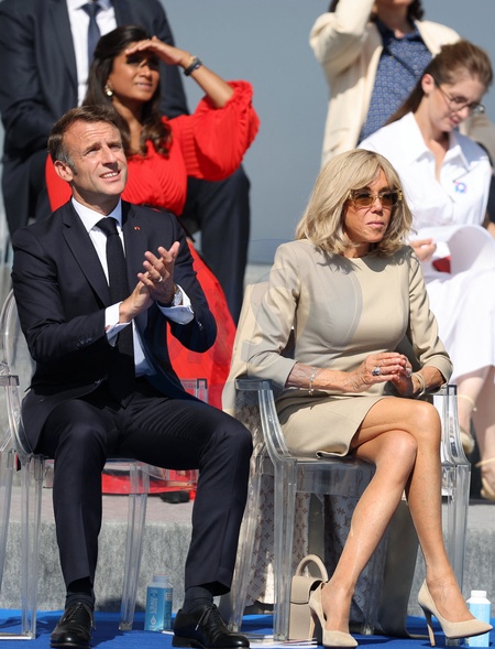 Brigitte Macron Uroczystość 144. defilady wojskowej 14 lipca, w Święto Narodowe, aleja Foch w Paryżu