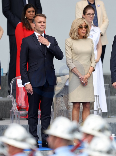 Brigitte Macron Uroczystość 144. defilady wojskowej 14 lipca, w Święto Narodowe, aleja Foch w Paryżu