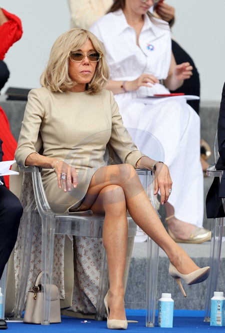 Brigitte Macron Uroczystość 144. defilady wojskowej 14 lipca, w Święto Narodowe, aleja Foch w Paryżu