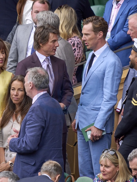 Tom Cruise and Benedict Cumberbatch in the Royal box during the men's final on centre court between Carlos Alcaraz (ESP) and Novak Djokovic (SRB) at the 2024 Wimbledon Championships at The All England Club, London, United Kingdom , 14 July 2024, Credit:Peter van den Berg / Avalon