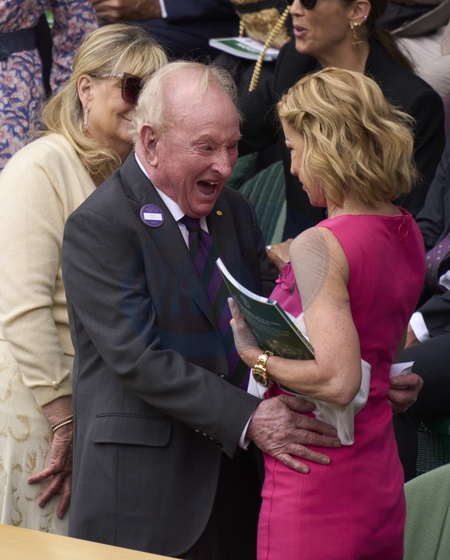 Rod Laver and Chrissie Evert in the Royal box during the men's final on centre court between Carlos Alcaraz (ESP) and Novak Djokovic (SRB) at the 2024 Wimbledon Championships at The All England Club, London, United Kingdom , 14 July 2024, Credit:Peter van den Berg / Avalon