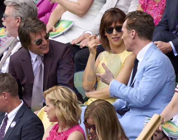 Tom Cruise and Benedict Cumberbatch in the Royal box during the men's final on centre court between Carlos Alcaraz (ESP) and Novak Djokovic (SRB) at the 2024 Wimbledon Championships at The All England Club, London, United Kingdom , 14 July 2024, Credit:Peter van den Berg / Avalon