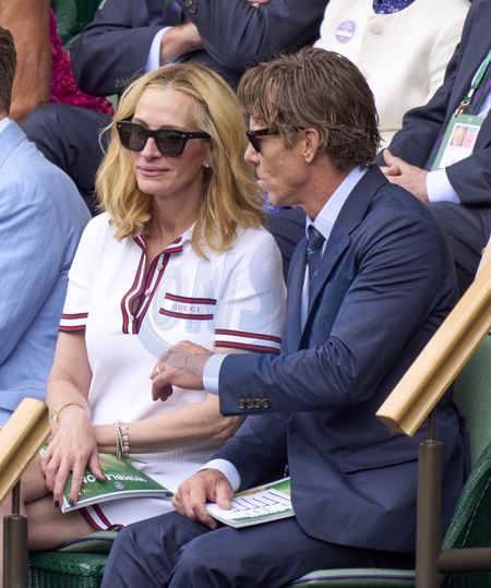 Julia Roberts and husband in the Royal box during the men's final on centre court between Carlos Alcaraz (ESP) and Novak Djokovic (SRB) at the 2024 Wimbledon Championships at The All England Club, London, United Kingdom , 14 July 2024, Credit:Peter van den Berg / Avalon