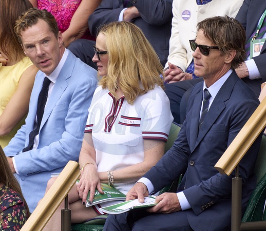 Julia Roberts and husband and Benedict Cumberbatch in the Royal box during the men's final on centre court between Carlos Alcaraz (ESP) and Novak Djokovic (SRB) at the 2024 Wimbledon Championships at The All England Club, London, United Kingdom , 14 July 2024, Credit:Peter van den Berg / Avalon