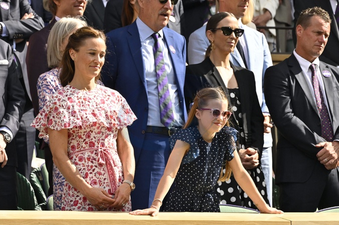 Catherine (Kate) Middleton z księżniczką Charlotte i Pippą Middleton na trybunach finału turnieju Wimbledonu 2024