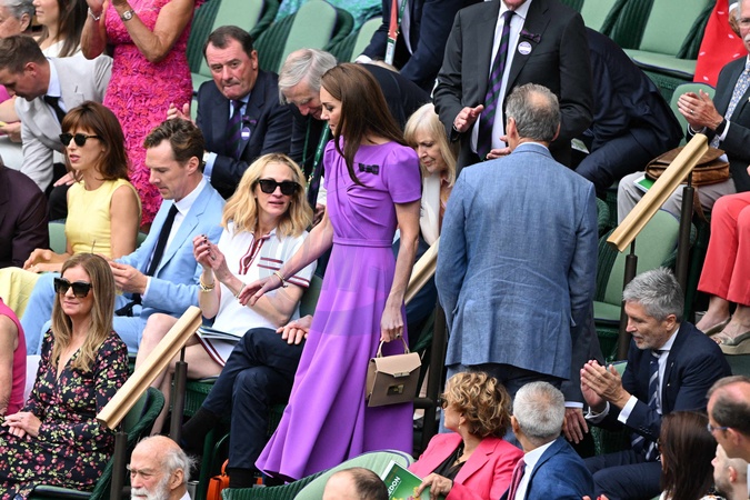 Catherine (Kate) Middleton avec la princesse Charlotte et Pippa Middleton dans les tribunes de la finale du tournoi de Wimbledon 2024, le 14 juillet 2024. Catherine (Kate) Middleton with Princess Charlotte and Pippa Middleton in the stands of the final of the 2024 Wimbledon tournament, July 14, 2024.