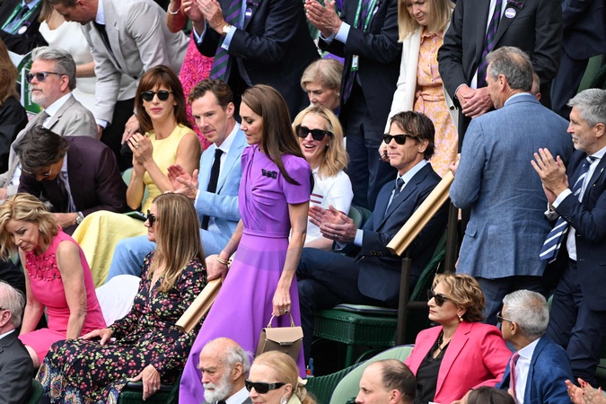 Catherine (Kate) Middleton avec la princesse Charlotte et Pippa Middleton dans les tribunes de la finale du tournoi de Wimbledon 2024, le 14 juillet 2024. Catherine (Kate) Middleton with Princess Charlotte and Pippa Middleton in the stands of the final of the 2024 Wimbledon tournament, July 14, 2024.