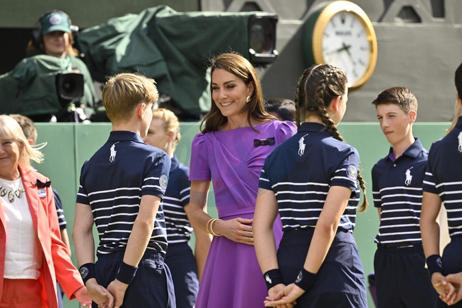 Catherine (Kate) Middleton remet la coupe à Carlos Alcaraz après sa victoire face à Novak Djokovic en finale du tournoi de Wimbledon 2024 (6/2 - 6/2 - 7/6)