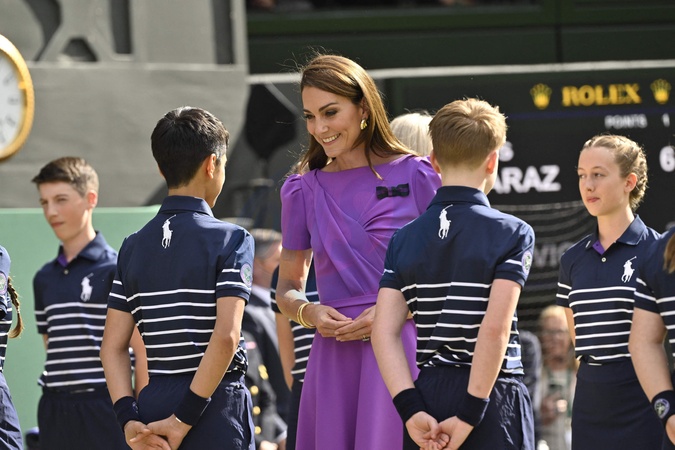 Catherine (Kate) Middleton remet la coupe à Carlos Alcaraz après sa victoire face à Novak Djokovic en finale du tournoi de Wimbledon 2024 (6/2 - 6/2 - 7/6)