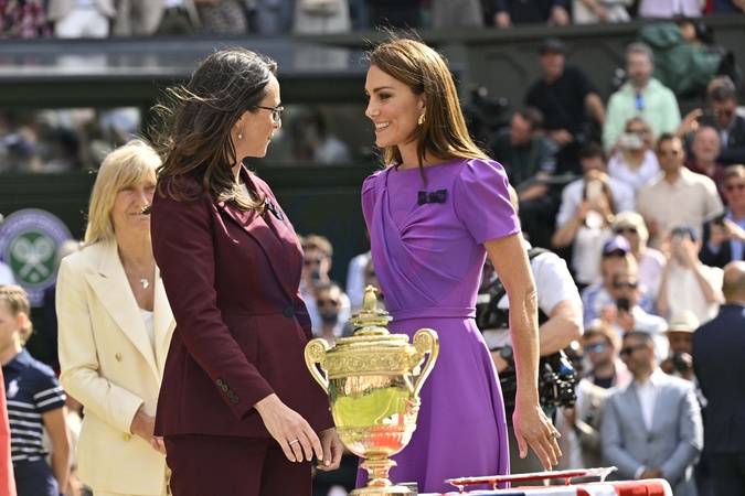 Catherine (Kate) Middleton remet la coupe à Carlos Alcaraz après sa victoire face à Novak Djokovic en finale du tournoi de Wimbledon 2024 (6/2 - 6/2 - 7/6)