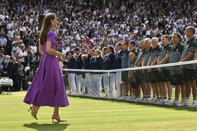 Catherine (Kate) Middleton remet la coupe à Carlos Alcaraz après sa victoire face à Novak Djokovic en finale du tournoi de Wimbledon 2024 (6/2 - 6/2 - 7/6)