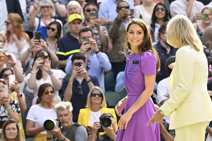 Catherine (Kate) Middleton remet la coupe à Carlos Alcaraz après sa victoire face à Novak Djokovic en finale du tournoi de Wimbledon 2024 (6/2 - 6/2 - 7/6)