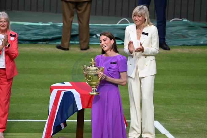 Catherine (Kate) Middleton remet la coupe à Carlos Alcaraz après sa victoire face à Novak Djokovic en finale du tournoi de Wimbledon 2024 (6/2 - 6/2 - 7/6)