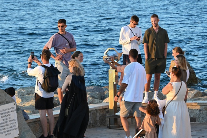 Kai Havertz i jego partnerka Sofia Weber jedzą lody podczas spaceru z przyjaciółmi po porcie Saint-Tropez